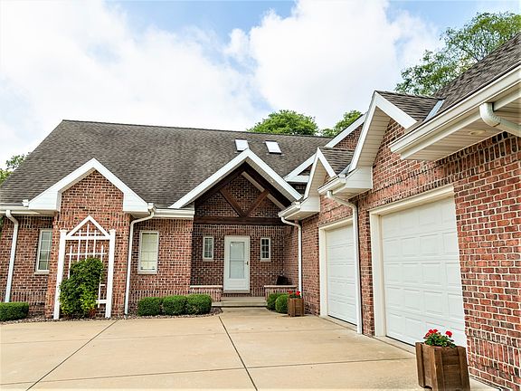 Great curb appeal with this beautiful all brick 2500 Sq ft 3 bedroom 3 1/2 bathroom home, sitting on 1.6 beautifully landscaped acres with separate 2/ 2car attached garages. Boasting an outside fireplace with a stamped concrete patio, this gorgeous home has a built in Weber grill and fridge inside the screened in porch. Inside the home you will find a large foyer, oak hardwood floors, 6 panel solid oak doors and open staircase, wood harbor doors, custom oak cabinetry, granite countertops in the kitchen, stainless steel appliances, in floor hot water heat throughout the home, Pella windows and 16' vaulted ceilings with 3 skylights, allowing for amazing natural light that overlooks the floor to ceiling gas river rock fireplace. The skylights have a top down/bottom up cellular shades to get the perfect amount of light. A Generac generator gives you peace of mind during power outages. The main floor laundry room has a built in ironing board, cupboards and countertops. The main floor primary bedroom contains a relaxing jacuzzi tub and shower! This spacious home also has an office right off the primary bedroom and living room. There is an additional room in the basement and even stairs and storage above the garage, making storage a breeze! The entire home, including the basement floors and the 4 car garages, all have in floor hot water heat. Furnace 2018. 2 water heaters. Schedule a showing today to truly take in all that this home has to offer.