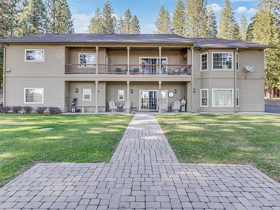 Welcome to this exceptional, exquisite 4-bedroom, 4-bath residence situated on a tranquil 1.3 acre parcel. With a thoughtful 2-level design and full living on the main level, this home offers both comfort and elegance. The tiled floor foyer opens to a spacious living room, setting the tone for the inviting interior. Inside, you’ll find a mix of carpet, tile, and oak hardwood floors, creating an ambiance that balances warmth and practicality. The vaulted ceiling living room adds an airy feel, and the wood stove provides cozy warmth during colder months. Culinary enthusiasts will delight in the gourmet kitchen, complete with double ovens, a gas cooktop, large buffet counter, plenty of cabinetry and walk-in pantry. Whether hosting a dinner party or enjoying a casual breakfast, you'll appreciate the versatile dining spaces provided by the formal dining room and breakfast nook. The gorgeous master suite boasts beautiful views, propane fireplace, walk-in shower, a jetted tub, heated bath floor, make-up vanity and a substantial walk-in closet with built-ins. There are two spacious guest bedrooms on the main floor of the home to accommodate your family and friends. Need a dedicated workspace? Look no further! The home includes an office area, perfect for remote work and features a Murphy Bed for added sleeping if needed. On the bottom level you'll enjoy the immense family/game room with adjoining bedroom and bath, just steps from the large concrete patio and lush back lawn. Car enthusiasts and hobbyists will appreciate the two garages (one heated) with a total of six bays. With approximately 1,938 sq. ft. of garage space, there’s plenty of room for vehicles, storage, toys and projects. Step out onto the concrete-covered front porch, covered back deck or bottom level covered patio and take in the fresh mountain air. Enjoy sweeping views of the surrounding landscape, making these areas an ideal spot for relaxation and entertaining. Quality construction ensures durability, including the newer 50-year roof, Hardie plank lap siding and the convenience of a huge paved circular driveway complete with multiple parking areas. Imagine having the U.S. Forest Service as your backyard neighbor! This location is perfect for the outdoor enthusiast. Explore natural beauty right from your property with miles of trails and back roads out your back door. Additionally, there’s Central AC, recirculating hot water, a 16' x 16 storage building, central vacuum, security system, intercom, full automatic sprinkler/drip system, exterior lighting & sizable laundry with an abundance of cabinets. The lower level stand up storage room (approximately 550 square feet) has a concrete floor. This home has plenty of room for large families & friends and would also make a fantastic vacation rental property. Most of the major furniture is included. Move right in and start enjoying the serene surroundings. Don’t miss out on this incredible opportunity—schedule a showing today!