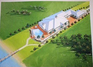 Edgewater, Florida is approx. 20 miles south of Daytona Beach in central Florida. This 1.4 ac. property is on the Intercoastal Waterway at Mile Marker 64 and on deep water. The prop. is 80' on the river and 600' deep evenly divided between the front and back half. If not wanted the back half can be sold to a contiguous prop. owner when his 30 ac. prop. is developed for waterfront lots at some time later. The prop. currently has a 2100 sq. ft. home on it in excellent condition. One concept for creating a new waterfront home is to build the new home between the existing house and the river structurally tying the two together and using the existing home as a guest house. The rendering shows how this might look, with a four car garage and a vanishing edge pool facing the river. The recently built heavily constructed dock features a 13,00 boat lift, and can be added to for additional dockage. Ponce Inlet to the ocean is approx. 5 miles north. The property is extremely quiet (the loudest sounds are the birds) and private. A single home 12 ac. prop. is south of the prop. and a single home 30 ac. is north. The semi-annual trek south in the Fall and north in the spring of the yachts spending the winter in south Florida is hugely entertaining, and wildlife abounds in birds and dolphins . Pods of dolphins are a common sight.