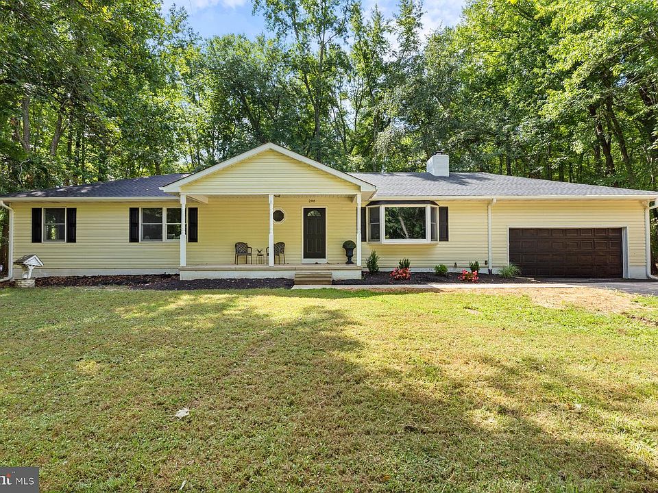 Welcome to this completely renovated 4BR/3BA sprawling rancher tucked into the landscape on a spacious 3.31 acre lot in Chesapeake City! Park on your newly paved driveway, just steps from the two-car garage and the covered front porch, and open the door into your forever home. Step inside a home filled with natural light, a crisp clean interior with a soft color palette, recessed and luxury lighting, LVP flooring, crown moldings, and so much more. The main living space boasts an open concept living room with a wood burning fireplace, a dining room with sliding doors to a screened in porch and a stunning kitchen. A door from the dining room gives you access to a mudroom with laundry, the garage, and the spacious yard. The kitchen features plenty of cabinets finished to the ceiling with crown moldings, stainless steel appliances, gas range/stove, sleek quartz countertops, and a deep stainless sink under a window. Down the hall, the first room is ideal as a home office. Then you have three similar sized secondary bedrooms all with spacious closets, a newly remodeled full bath, and a primary suite. The primary includes two walk-in closets, a third closet, and a private en-suite offering a double sink vanity, and a large walk-in shower. The newly carpeted lower level offers additional living space featuring a bonus room, a full bath, a large family room, storage space and access to the garage. From the screened in porch, access a newly seeded yard surrounded by trees, with acreage that offers so many possibilities! Additional major updates including a new roof, HVAC & water heater, gutters, french drain waterproofing system, updated electrical and plumbing, This home is located within 1 mile of all Bohemia Manor schools. Just minutes from Rt. 213, Rt 40, I-95 and tax free shopping in Delaware!