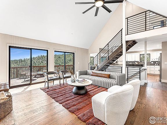 Welcome to 288 Ridgeview Lane, Boulder Heights' finest fully-remodeled luxury property, exclusively listed by Burgess Group \ Compass. Nestled in the stunning Boulder, Colorado foothills, this home features sundrenched spaces, unparalleled quiet privacy, and breathtaking mountain views on every floor. A perfect blend of modern elegance and rustic charm, it is situated on over an acre of lush greenery. With reliable ~1,200Mbps high-speed internet, dependable FedEx/Amazon/etc package delivery multiple times daily, a backup generator, and surprisingly quick snow removal, this home is a breeze to live and work in. Make tamales with friends and family in the roomy open-concept kitchen with granite counters, basalt herringbone tile, and brand-new stainless appliances. Toast life in your dining room, then tell stories around the wood-burning living room fireplace. Drink in the spectacular night sky from impressive decks and patios that provide this home with endless opportunities for relaxation and recreation. After your guests have left, head up to your primary retreat: perched atop of your home, the primary bedroom features views of Denver, Boulder, and the back of the Flatirons, a gas fireplace, a sitting room, and a gorgeous five-piece ensuite bathroom, making this home a true sanctuary. With two additional spacious bedrooms, two rooms for office/exercise, and 2.5 more beautifully remodeled bathrooms, this house has all the finished space you need. The impressive renovation includes: mechanicals, paint (inside and out), windows/sliders, stairs, bathrooms, hardwood floors, carpet, smooth walls, and a new driveway. See media or ask for the full list. Enjoy the serenity of this mountain oasis, with helpful, friendly neighbors, just minutes from the thriving culture, arts, and culinary scene of downtown Boulder. Don't miss this rare opportunity to own one of Boulder Heights's most exceptional properties. Call today to schedule your private showing.