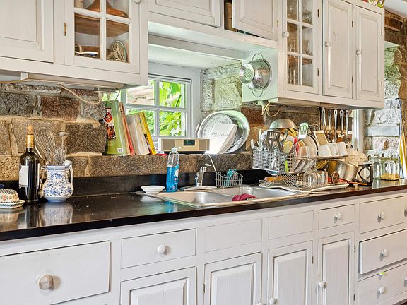 A granite home built lovingly by hand - stone by stone. This owner/builder gathered 193 truck loads of cuts from the granite quarry and constructed this home while living in the primitive log cabin attached. This property is entirely off grid powered by solar with backup batteries and a generator and nestled into the heart of the woods with a spectacular garden surround. With ivy climbing up the exterior walls, lupines, berries, hostas, and wide variety of perennials that spring to life each May this place offers a chance at an escape from the frenzy of daily life. The hardwood floors are milled from Cherry trees harvested from the property. With groves of maple, birch, pine, and apple - take the chance to make your own syrup, create your own pies, and homestead the way you have always wanted. There are acres upon acres of deer trails to follow through the forests surrounding the home. A brook runs through the land year round providing fresh, crisp water. This has always been used full time year-round, but could easily be converted to seasonal use if desired. Use the log cabin as an in-law retreat or rental! Please give advanced notice for showing requests.
