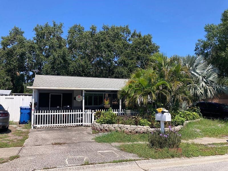 2 Bedroom/2 Bathroom home in desirable Palm Harbor neighborhood. Situated on a street near the end of a cul-de-sac this home is in a great location, convenient access to US 19. Covered front porch for enjoying morning coffee. Large back patio for year round use. The backyard is a tropical oasis. Living dining combination with a cozy open kitchen. Keep your car out of the sun inside the 1 car garage. The home is currently occupied so please do not approach without an appointment.