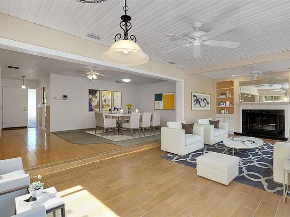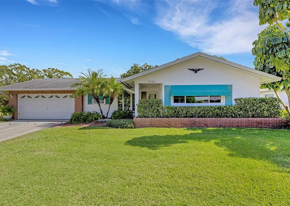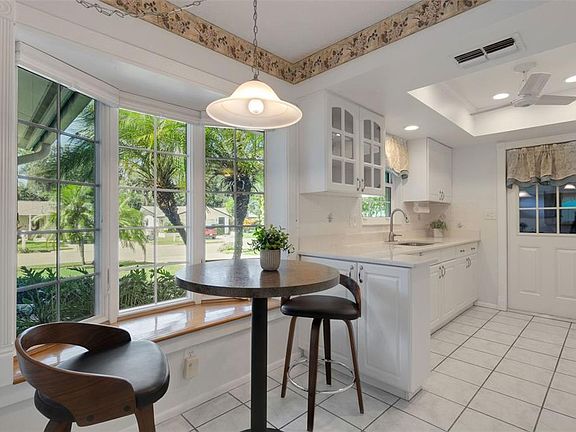 BEAUTIFULLY UPDATED 2-BEDROOM, 2-BATH POOL HOME! This 1548 sq ft home features a bright, open layout and an easy-to-maintain sparkling BIRDCAGE POOL with a New handrail, New pump, and filter (all under 2 years old). The EAT-IN Kitchen offers QUARTZ countertops with custom cabinetry, while the guest bath has also been completely renovated with a New Tiled STEP-IN Shower and Quartz Vanity. The Living Room (with a Solar tude bringing in Natural light) and Dining Area are Open to the Family Room. Enjoy cozy gatherings by the GAS FIREPLACE! The Knockdown Ceilings and Beadboard bring a modern vibe. A Spacious two-car garage with Pull-down attic access provides ample storage. Additional Upgrades include a 30-Gallon Water Heater (2025), a Rheem Water Softener, and a NEW SUBMERSIBLE WELL PUMP for the yard with a NEW Rainbird control pad. New Windows in 2020, HVAC new in 2017, New Electrical Panel 2017, the Roof is 11 years old - Inspector estimates 9 years of remaining life. This Well-Maintained Home is MOVE-IN READY in HIGHLAND LAKES ON LAKE TARPON, where Retirement meets Recreation in this 55 or better community, the LOW Monthly HOA fee of $164 Entitles you to FREE GOLF on 3 executive courses with several PAR 4s! Activities include ceramics, stained glass, Full woodworking workshops, shows, dances, BINGO, cards, Bocce, Shuffleboard, PICKLEBALL, TENNIS, Billiards, PingPong, 2 PONTOON Boats for cruising the Lake, FREE BOAT and RV STORAGE, and SO Much More. ALL OF THIS plus just 30 minutes to 2 International Airports, 3 miles to WORLD FAMOUS HONEYMOON ISLAND, Beaches, restaurants and Shopping conveniently near by.