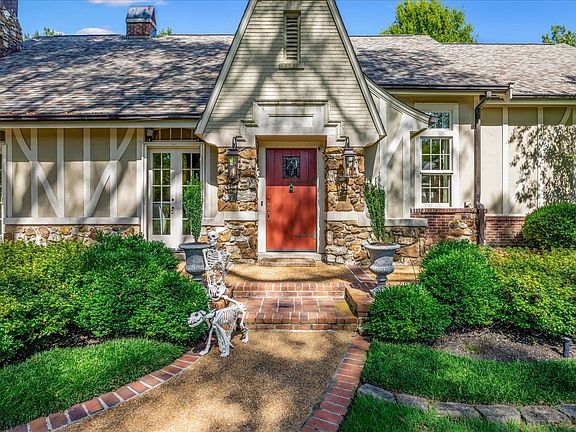 Nestled in the heart of Chickasaw Gardens, this enchanting one-story English cottage is a true architectural gem, blending storybook charm with timeless renovations. Step into a living room adorned with a barrel-vaulted ceiling, a graceful curvilinear staircase, and a striking stone fireplace. The sunroom, bathed in natural light, boasts a stone floor and abundant windows, creating a serene retreat. The kitchen features a vaulted ceiling with antique beams and top-of-the-line appliances. The dining room captivates with a large window and a unique “overlook” to the living room. A lovely powder room adds convenience, while the primary bedroom offers a large walk-in closet, beautiful views, access to a charming brick patio, and a luxurious marble bath. The second bedroom includes a private bath, and permanent stairs lead to an expandable attic, offering endless possibilities. Another feature is the encapsulated basement that is heated and cooled with a storm shelter.