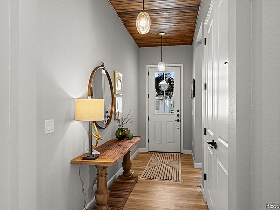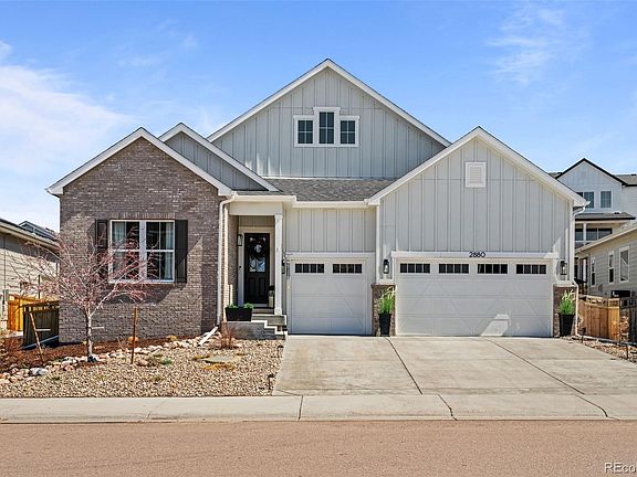Welcome home to Blacktail at The Meadows. Step into luxury living with this stunning Richmond American Homes Darius model. Virtually brand new and thoughtfully upgraded throughout, this Pottery Barn-perfect ranch-style home offers over 2,900 square feet on the main level and 5,300 square feet (5,800 total sq.ft.) of exceptional living space. The open-concept floor plan is bright, spacious, and designed for connection — ideal for both entertaining and everyday living. At the heart of the home is a gourmet kitchen featuring an oversized quartz island, upgraded tall cabinetry, a corner pantry, dining nook, refrigerator, double ovens, gas range, and modern finishes throughout. Retreat to the expansive primary suite complete with a luxury en-suite bathroom and a walk-in closet. A secondary owner's suite with its own private living area offers incredible flexibility — perfect for multi-generational living, guests, or a home office setup. The great room is open and airy, highlighted by a 15-foot accordion sliding glass door that seamlessly extends the living space to the covered outdoor patio — perfect for enjoying Colorado’s beautiful weather. Each bedroom on the main floor includes its own private en-suite bathroom, and you’ll also find a formal dining room for special occasions. Downstairs, the massive finished basement is ready to impress with a full bar (including fridge), a spacious bedroom and bathroom, and a versatile flex space ideal for a gym, media room, or guest suite. Additional highlights include: 3-car garage, Energy-efficient solar panels (average utility bill with Core Electric is only $20/month!) Low-maintenance xeriscaped front and back yards. Surprisingly low property taxes compared to other new-build communities. Don’t miss your chance to own this exceptional home in a premier location. Schedule your private showing today!