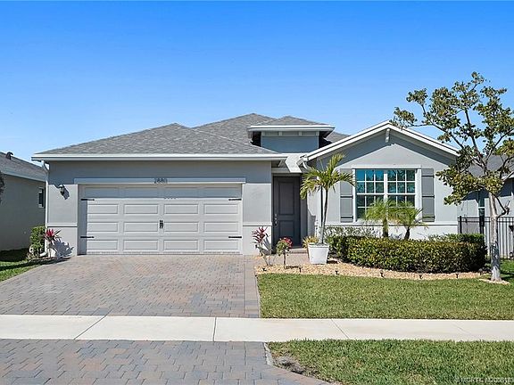 This beautiful 4-bedroom, 2-bathroom home with a 2-car garage is in the desirable Seawalk gated community in Jensen Beach. Built in 2021, this CBS block home features impact windows and doors for security and energy efficiency. Inside, enjoy abundant natural light and a coastal-inspired design with porcelain plank flooring. The kitchen features white shaker cabinets, stainless steel appliances, quartz countertops, and a chic backsplash. Over $40,000 in upgrades include custom closets, a luxurious primary shower with porcelain tile and frameless glass, and a striking stone accent wall with an oversized fireplace. The outdoor grill island and extended covered patio are perfect for entertaining. Additional features include designer lighting, ceiling fans, a laundry room with cabinetry, and an epoxy-coated garage floor. Community amenities include a pool and cabana, and the home is near Publix, downtown Jensen Beach, and the beach in the top-rated Martin County School District.