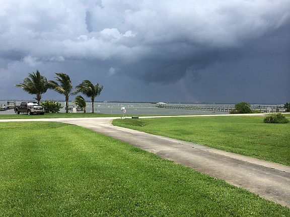 Two-story Indian River waterfront custom home with 3 bedrooms upstairs with 2 full baths, plus 1 bedroom/office downstairs with a half bath. Fireplace downstairs as well as upstairs in master bedroom suite. Master bedroom has balcony overlooking the Indian River Lagoon and 250 foot plus boat dock with cover, electric lift, and freshwater. First floor includes oversize two car garage, separate utility room, large kitchen, dining room, living room and entry with cathedral ceiling, large family room with fireplace and screened front porch all with river views. Office/fourth bedroom off family room. Downstairs also includes a half bath. Water softener, dual AC units. External features include boat dock with covered area, boat lift, water , and electricity. Property also includes swimming pool, wooden deck, and a barn with carport, large enough to hold an RV and a boat inside, also has a full bath. Property is accessible from Rocky Point Road and has a second access directly onto US1 (Invaluable for boat and RV access). Vegetable garden, artesian well, numerous fruit trees. House was built in 1984, but fully renovated in 2005. Concrete/hardiboard exterior. New roof in 2018. Full hurricane shutters. One owner home.