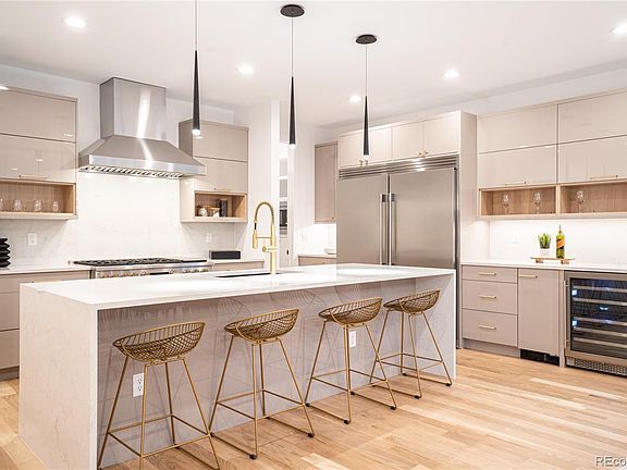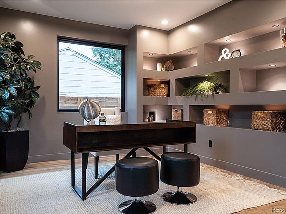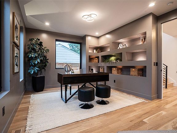 Beautiful new construction in University Hills by Redeux Developments. This home combines tasteful contemporary architecture, a functional floor plan, designer finishes, and a 13,100 square foot lot to deliver a mix of luxury and value that are unmatched in the area. Entering the home you will be greeted by a spacious entry and a main level that includes a private office with custom built-ins, dining area, living room with fireplace, and a well-appointed kitchen perfect for quiet family dinners or entertaining. The kitchen contains a 48” range with double ovens, ice maker, dishwasher, commercial size fridge and freezer, beverage center, custom cabinets, a large island, and quartz countertops tops throughout. The entire rear of the living room is a glass wall system that opens to one of two spacious patios that overlook the vast, private, tree lined backyard. The upstairs is highlighted by a well-appointed primary retreat complete with a private deck, five piece bath, large walk-in closet, vaulted ceilings and state of the art steam shower. Furthermore, the upstairs contains a large laundry room and three additional bedrooms (one with an en-suite bath). The basement includes a large great room with wet bar, exercise room with rubber floors (also a conforming bedroom), an additional bedroom, full bath, and generous storage. Additional features: professional landscaping, security system, and smart thermostat.