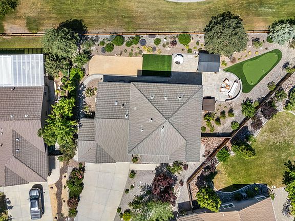 Simply stunning and elegant, this Wingfield Springs home with 5 bedrooms 3.5 bathrooms in a spacious floor plan, backs to the 10th green at the Lakes Course at Red Hawk and offers picturesque and sprawling mountain and golf course views to the west and is situated on a large, impeccably landscaped cul-de-sac lot. The primary suite is located on the main level and has its own gas-log fireplace and spacious walk in closet. The home has a 3 car garage, well appointed chef's kitchen with double oven, formal dining, great room with towering ceilings, solid flooring throughout, laundry room with sink and lots of storage, and more. Incredible views can be taken in both inside and from the incredible backyard that also features a fountain, spa, putting green, gazebo, turf - all overlooking the golf course - truly a centerpiece for enjoying outdoor living.