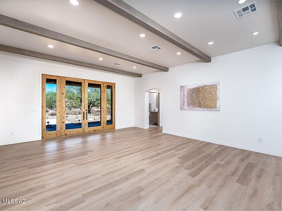 Welcome to your own private retreat on 3.31 acres, where timeless updates blend seamlessly with the beauty of the Sonoran Desert. From the moment you arrive, you'll be captivated by the unobstructed views of the majestic Pusch Ridge mountains. Imagine sipping your morning coffee as the sun rises over the peaks, or winding down in the evenings surrounded by the tranquil glow of desert skies.Inside, the soft neutral palette creates an inviting and serene atmosphere. The spacious living room features a striking wood-beamed ceiling, and a warm fireplace is a wonderful way to greet your guests. You then flow effortlessly into the expansive kitchen with center island and into the cozy family room with an additional fireplace and dining area -- perfect for gatherings both large and small. The spacious and luxurious primary bedroom offers breathtaking mountain views, with a spa like bathroom complete with a spa-like soaking tub, and fully tiled walk-in shower. Guests will enjoy their own private retreats with a junior suite featuring an oversized bath and walk-in multi-jetted shower. It doesn't stop there, there is an additional full bathroom with gorgeous tiled walk-in shower.