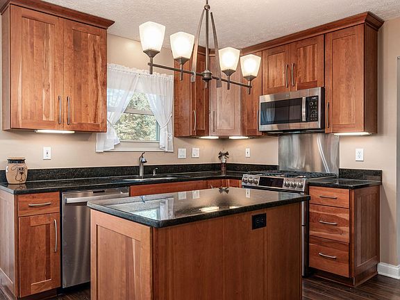 You'll love the bright, open-concept main level featuring a circular floor plan that's perfect for everyday living and entertaining. The updated kitchen boasts GE Profile appliances, 42-inch custom cabinetry with brushed nickel hardware, a built-in pantry, granite countertops, a spacious island, and stylish LVT flooring. The kitchen opens to the inviting family room with a charming gas log fireplace and access to a large deck—ideal for relaxing or hosting gatherings.