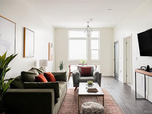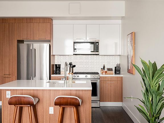 AIRBNB LICENSE INCLUDED – Take advantage of this short-term rental license without needing to make it your primary residence! This stylish, fully furnished LoHi home blends modern design with sustainable living. Step inside to an open floor plan filled with natural light, where a sleek kitchen with stainless steel appliances and a central island takes center stage. The spacious living area seamlessly transitions into a dining space framed by expansive windows, offering abundant sunlight. Open the glass doors to a private balcony with city views, perfect for unwinding. The generously sized bedroom offers a peaceful retreat, complete with a tranquil bathroom featuring a walk-in shower. A washer and dryer are also included for convenience. Premium finishes by Porcelanosa elevate the design throughout. Enjoy stunning views of the mountains and cityscape from the community rooftop, designed for relaxation. Part of a Denver Urban Green development, this mixed-use building is on track to earn a LEED Platinum designation, featuring sustainable materials, energy efficiency, and solar power. A parking spot is available for lease in a community garage.This can be either a Primary or Investment Property. Residents also have easy access to a main-level restaurant, Zuni Brewery, and popular LoHi eateries.