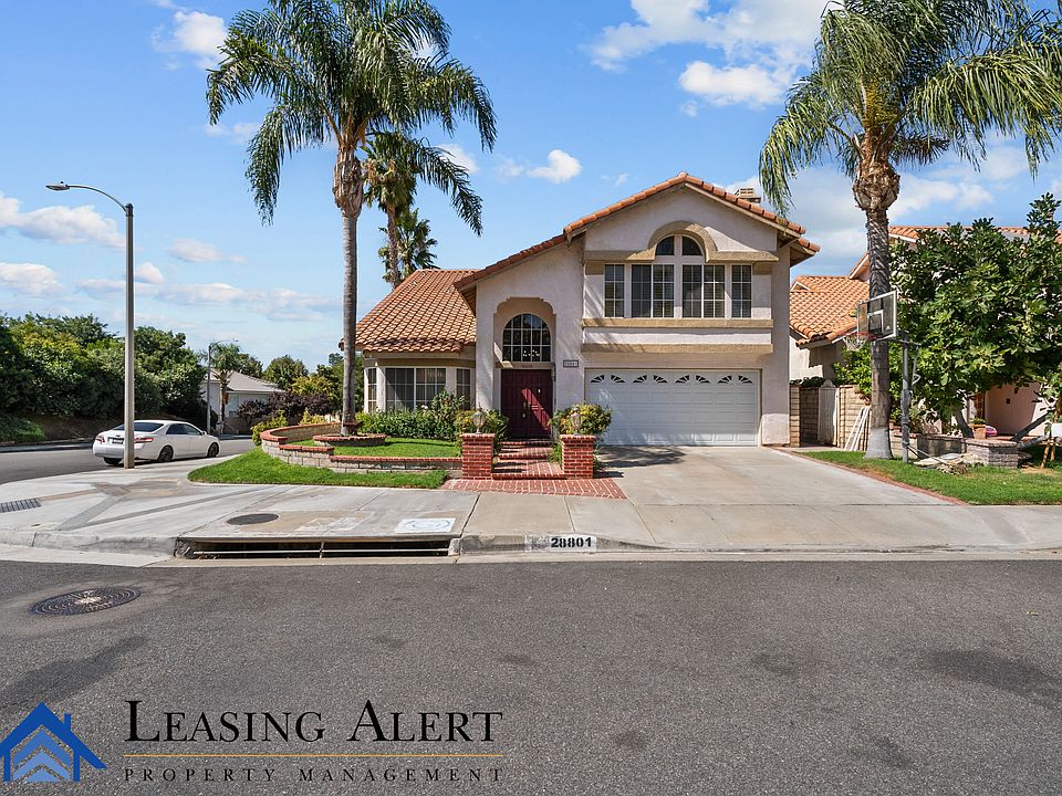 Located in the sought-after Bouquet Canyon Estates, this spacious two-story home offers 4 bedrooms, 3 bathrooms, and 3,023 square feet of living space. Featuring brand new windows throughout the downstairs, new luxury vinyl floors and fresh paint, the home boasts a modern yet comfortable feel. The large master bedroom includes an expansive master bathroom, while the downstairs offers a convenient bedroom and bathroom setup. The kitchen comes equipped with granite countertops and a brand-new stainless steel oven, perfect for cooking and entertaining. Vaulted ceilings and elegant arch-style walkways add a touch of sophistication, while two fireplaces bring warmth to the living spaces. The large loft provides additional space for a variety of uses. Step into the backyard and enjoy your private pool and spa, perfect for relaxation. Pool service and a gardener are included to keep the outdoor areas in top shape. With its thoughtful design, stylish updates, and prime location, this home is an ideal rental opportunity.