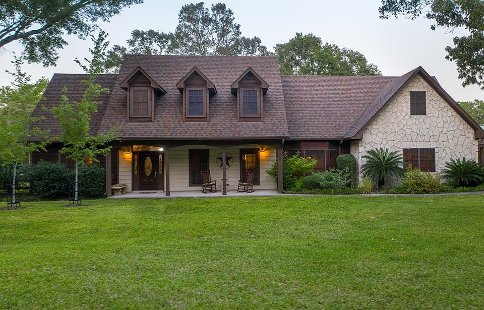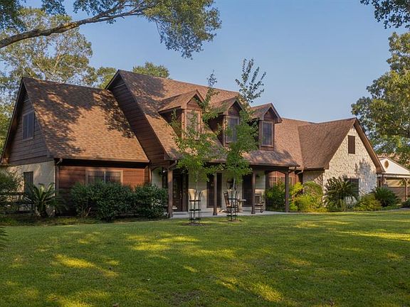 Looking for space and security near city amenities? Maybe a place to store your big toys, equipment, or just live the country life. Welcome home! This 4298 sq ft, two-story home sits on 10 acres with 2 gated entrances, 2 wells, stocked pond with gazebo, 5 acres of irrigation, in-ground spa, and fully fenced. First floor offers master suite, den with wood burning fireplace, kitchen, utility, dining and living rooms, and large office. Second floor offers 3 bedrooms, 2 full baths and large gameroom. Detached buildings include a 36âx50â with attached 3-car carport and a 30âx40â with 12â roll-up doors. Enjoy nature, ATV riding, go fishing, or have your livestock. Many opportunities to fit your needs. Minutes from The Woodlands and SH-249. No Flooding, No HOA, and home-based business allowed. Click on media icon to view property video and virtual home tour. This acreage is even more impressive in person, see it today!