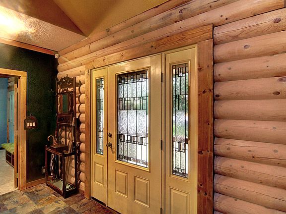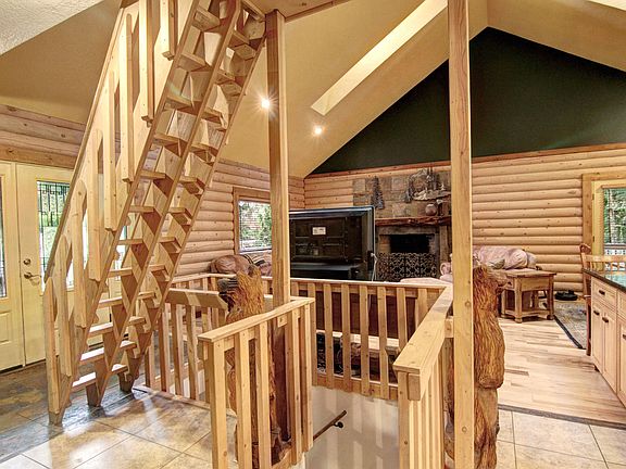Spacious Custom Log Home w/Lodge feel, located on Lush Wooded Green Belt, Vlt Ceilings, exposed beams, Lg artisan designed Rumford FP, Covered Wrap-around Deck, Solarium/Atrium rm. Open concept Living/dining rm to a very generous Kitchen w/lg Island, Mstr Bd w/ walk in shower & closet, guest bath & mud/laundry rm on main fl. Lg loft upstairs w/skylights & fans, LL Kitchenette, 2 bds w/priv. entry and a Lg daylight bsmt w/French doors, Oversized Pole blg shop/garage, 6-8 Cars or up to 40ft RV.