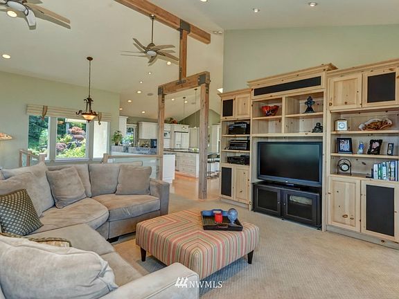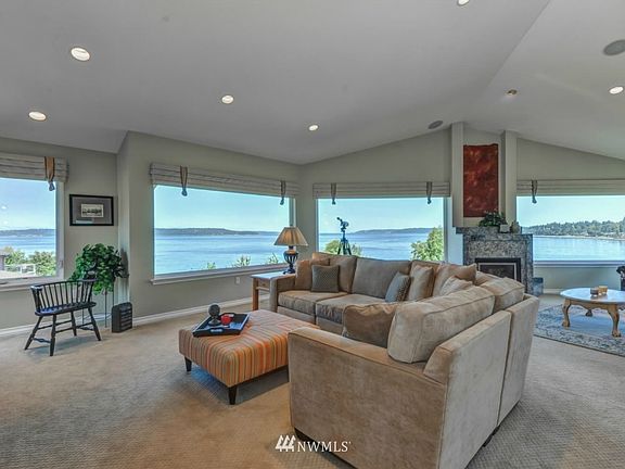 Exquisite view home w unobstructed 180 degree views of Sound & Olympics.Custom designed to maximize extensive views from all rooms. The main level is spectacular w it's open floor plan featuring a grand gourmet kitchen w adjoining deck, a dramatic open beamed archway leads you into the living area w sweeping views - you'll never want to leave.Master suite w/ 5 piece Bath, jetted tub & heated floors. Many custom features - Sauna, art glass etc. Lrge finished Basement area w outside entrance.