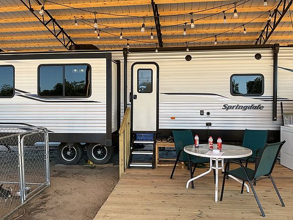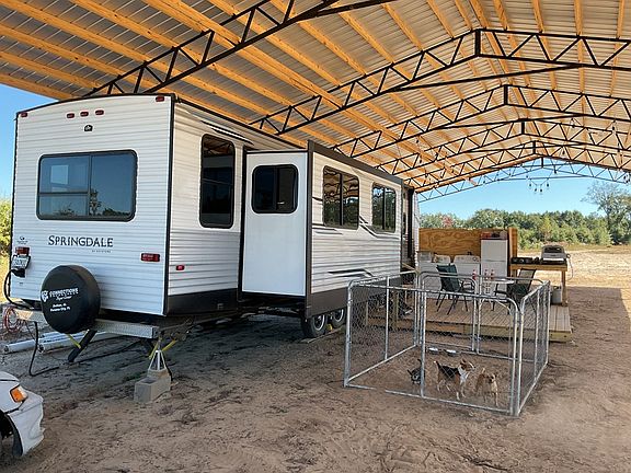 This is a good one! It has 58 acres of cut over land that the owner has cleared about 8 acres, and the 35 acres of wooded land in the back has a nice creek and mature hardwoods. It has over 800' of dirt road frontage. With no restrictions, enjoy hunting, shooting guns, farm animals, etc. It has a 2019 333 RE Keystone Springdale RV under a 40 x 84 pole barn. Seller is leaving all appliances.