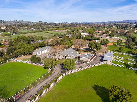The quintessential Santa Ynez Valley Ranch! For the equestrian, hobbyist, gardener or craftsman. Beautifully remodeled main house with 4 bedrooms, 3 full baths, large gourmet kitchen with Sub-Zero refrigerator, Miele dishwasher, Viking Range with an oven and a half, plus additional Viking oven for the baker! Spacious outdoor entertaining area with patios, pool, spa, pool house that includes a half bath, outdoor shower and storage room with cabinets and refrigerator, Santa Maria-style wood BBQ plus bocce court and play structure amid the shaded lawn. Walk-in basement for the wine collector. Two large pastures grace the gated entrance, plus a 3-stall barn with turnouts and a tack/feed room. Room to add an arena and round pen. Separate gym building, detached 2-car customized garage