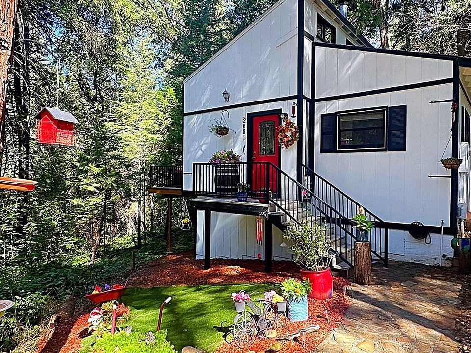 Perfect cabin home in the mountains on a beautiful 1-acre. 2 bedrooms with a spacious loft which can be used as an additional bedroom. 1 bathroom. Both rooms have 2 large windows. Recently built deck to enjoy mornings and evenings. A large basement could potentially be used as a work or project area and has plenty of storage. Cobblestone walkway, black rod iron railings and outdoor deck. Wood burning fireplace, vaulted ceilings all cedar wood planks. Easy access to Safeway, 4 miles away. Local convenience stores are 1 mile away. Beautiful lakes within just a 15-minute drive. Lake Tahoe is just an hour's drive away. Historic Placerville is just a 10-minute drive as well as TJ Maxx, Target, Walmart as well as fast food chains/restaurants. Quiet peaceful neighborhood with residents who have lived here for many years. Private road with only local residents who drive down it. Gravel driveway can easily fit six vehicles. This little community will make you feel right at home.