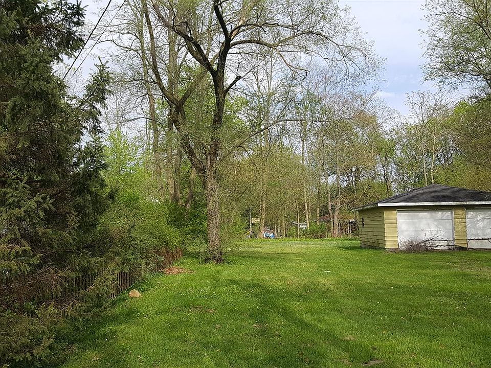 Vacant lot with 2 car garage. Lockbox on garage.
