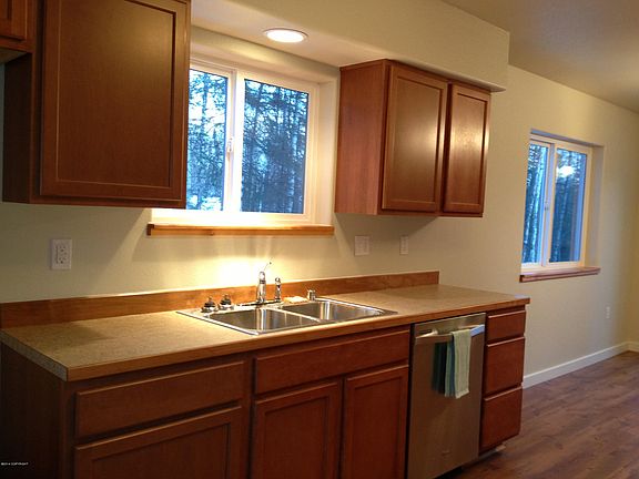 Very charming and cozy home on a semi secluded over-sized acre. Energy rated 5 star plus. You can not find a better price per foot on new construction, from Houston to Palmer! This is a great home with deck off the dining room and a covered porch. On demand hot water, stainless steel appliances, sunken living room, all bedrooms on the same level, and super easy access to the Parks Hwy.