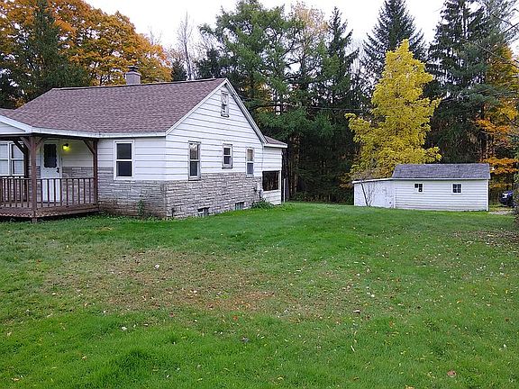 Cozy little two bedroom home on corner acre lot in General McLane School District. Large closet in master bedroom and one full bathroom with tub and shower. Enter through front porch door or back cement patio. Eat-in kitchen, living room, full stand-up attic over main house as well as storage over back patio. Outside there is an established fire pit and two car detached garage with small workshop attached to the back. New roof was put on in 2019 as well as 80 gallon hot water tank, french drains and a new furnace in the basement. Washer as dryer hook-ups are available there as well as a slop sink. Also installed in 2019 was a new 325 gallon propane tank with all new lines from the home. Renter is responsible for paying and acquiring all utilities including gas, electric, cable/internet, and trash pick-up. Tenant is also responsible for lawn care and snow removal. Maximum of two dogs are permitted only after signing an additional pet policy and paying a $250 Pet Deposit. There will also be an additional fee of $25 per pet, per month required with rent. Sorry, NO CATS and absolutely NO SMOKING is permitted in the home.