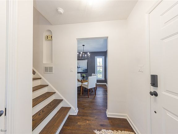 Welcome to 28812 Cresthaven Drive in Willowick! This beautifully updated 2-bedroom, 1-bath home combines modern comfort with an unbeatable location just steps from Lake Erie. Enjoy peaceful lake views right from your front porch and quick access to parks, shopping, and Willowick’s scenic lakefront. Inside, refinished hardwood floors flow throughout a spacious layout featuring a large living room with a wood-burning fireplace and a formal dining area. The updated kitchen boasts white shaker cabinets, quartz countertops, stainless steel appliances, and a breakfast nook with a built-in coffee bar. Upstairs offers two bedrooms plus a versatile bonus room above the garage, perfect for an office, walk-in closet, or craft space. The finished basement adds valuable living space with vinyl flooring, recessed lighting, and a second wood-burning fireplace. Enjoy year-round comfort with a brand new furnace and air conditioning unit and peace of mind knowing the home is Point of Sale (POS) compliant with the City of Willowick. Outside, entertain on the large covered patio and wooden deck overlooking a deep backyard with a charming chicken coop, and benefit from the convenience of a one-car attached garage. With lake views, modern updates, and a prime location, this home perfectly blends charm, comfort, and functionality.