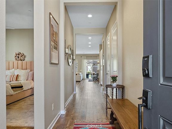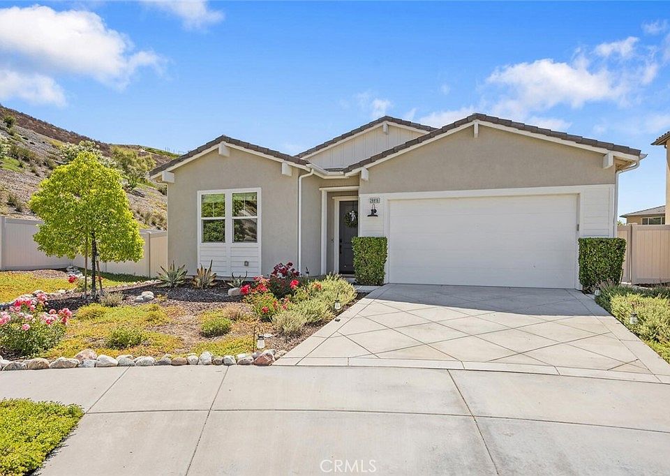 Experience single story living at its finest in this model perfect Celestia home, ideally located on one of Skyline’s most coveted cul-de-sac lots. With 3 spacious bedrooms, a versatile den or potential 4th bedroom, 2.5 bathrooms, and fully paid solar, this exceptional residence blends elegant design with everyday comfort. Step inside to a thoughtfully designed open floor plan that offers seamless flow, ideal for both entertaining and quiet moments at home. The bright, neutral palette is enhanced by high end finishes throughout, including luxury vinyl plank flooring, plush upgraded carpet, recessed lighting, ceiling fans, and custom Hunter Douglas window treatments. The kitchen is a true standout, featuring sleek quartz countertops, a designer tile backsplash, crisp white Thermafoil cabinetry, upgraded Whirlpool stainless steel appliances, a charming artisan clay farmhouse sink, and a spacious pantry. It opens beautifully to the dining and living areas, creating a warm, welcoming space for gatherings of any size. For the ultimate entertainment experience, enjoy the newly installed high performance 5.1 in-ceiling home theater audio system, pre-wired for two additional speakers and easily controlled from your smartphone. Through expansive sliding doors, step out to a private, beautifully manicured backyard. With a covered patio, lush turf lawn, and plenty of space for a future pool or play area, it’s the perfect outdoor retreat. The den offers flexibility as a home office, guest space, or potential fourth bedroom, located conveniently near the powder bath and laundry room. The serene primary suite features a ceiling fan and a spa-inspired bath complete with dual quartz vanities, a large walk-in shower, soaking tub, barn door entry, and a generous walk-in closet. Two additional bedrooms share a stylish full bath with upgraded finishes. The finished garage includes a Tesla wall charger, epoxy flooring, custom built-in cabinetry, and overhead storage, making organization effortless. Just a short distance to Skyline’s signature amenity, The Lookout, you’ll enjoy access to a stunning pool and spa, splash pad, playground, gym, clubhouse, and sweeping views of the valley. Additional parks, trails, and pools are nearby, along with convenient access to shopping and the 14 freeway via Sierra Hwy, Golden Valley, or Whites Canyon. This is more than a home, it’s a refined lifestyle, ready to be enjoyed for years to come.