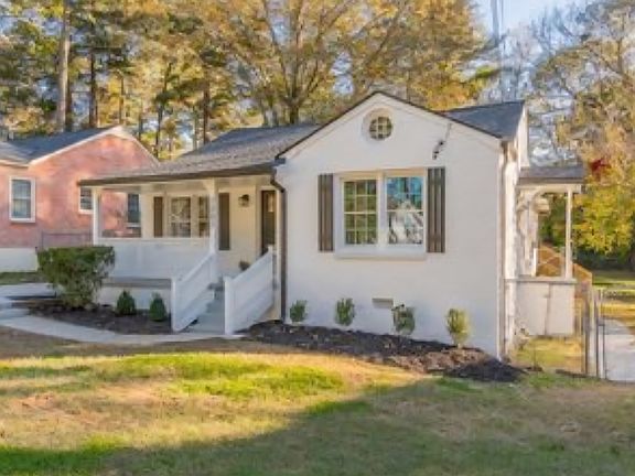 This adorable brick ranch offers comfortable living with 3 bedrooms and 2 baths, hardwood floors throughout, and an open-concept layout featuring a kitchen with stainless steel appliances, quartz countertops, and an island with bar seating. A cute front porch welcomes you in, while the expansive, fully fenced backyard and large, partially covered deck provide plenty of outdoor space. Natural light fills the home through generous windows, creating an airy feel. Located in East Lake within the 30317 ZIP code a part of intown Atlanta that includes Kirkwood, Edgewood, and East Lake this home puts you in a community known for its mix of residential charm and easy access to the city. While the street is peaceful, you're just a short drive from nearby retail, dining, and parks, and close to public transit, making both local life and commuting simple.