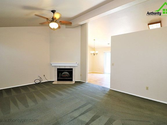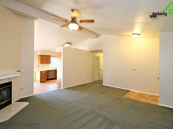 Upon entering this spacious home, you will see a large living area with vaulted ceilings and a fireplace nestled into the corner. Directly off the living room is a large, tiled kitchen with direct access to the backyard. To the right of the entry is the hallway leading to the guest bathroom, a separate laundry room, two bedrooms, and a master bedroom with a private bathroom. Contact our office today to schedule an appointment.