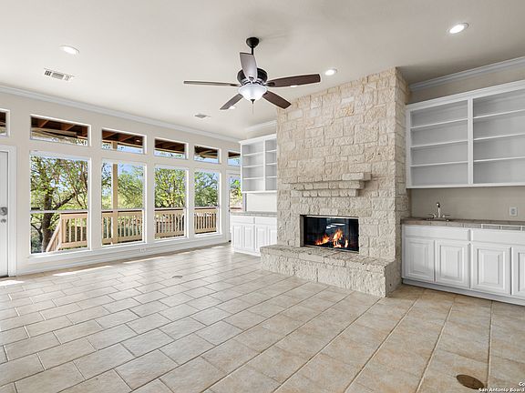 Experience hill country living in this two-story home in Windermere in Fair Oaks Ranch, Texas. Breath-taking views off the 2nd level balcony, 20' entry ceiling with custom iron doors, this expansive 3,686 sq ft home has the perfect floorplan for families and entertainers alike. This thoughtfully designed property features 5 bedrooms, including 3 with en-suites, 4.5 bathrooms, and a three-car attached garage, nestled within one of Fair Oaks Ranch's most sought-after communities, Windermere. The first floor features a large living area with oversized windows, the primary suite and bathroom, a dedicated dining room, a breakfast room, and an additional bedroom. The second floor has three bedrooms, each with its own bathroom and another living area. A great floor plan for a family! Outdoor living is just as impressive with two covered patios, a hot tub, and a second-level balcony providing a private outdoor retreat and excellent hill country views. The beautifully landscaped yard is surrounded by a privacy fence and wrought iron fencing, set against a backdrop of mature trees. Less than one mile from the Fair Oaks Ranch Country Club, hop in your golf cart and head to the club, where membership includes access to the pool, tennis courts, golf course, and a clubhouse. This home offers easy access to local shopping, dining, and entertainment while being part of the esteemed Boerne Independent School District.