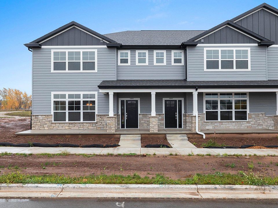Enjoy the convenience of this gorgeous 3 bedroom, 2.5 bath Townhome in a desirable location near Howard Commons & walking trails. Features open concept design perfect for entertaining, along with stylish fireplace in Living Room for cozy evenings at home. Kitchen offers large center island, tile backsplash & abundant storage. Additional features are upper level primary suite with dual sinks & walk-in closest. Upper floor designed with laundry area & 2 additional bedrooms, one w/ walk-in closet. Other amenities include zero-step entry w/ attached 2 car garage. Zero lot line property. Move in & enjoy carefree living!
