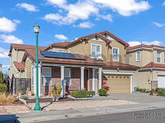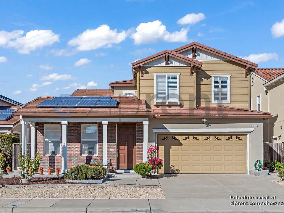 If the facade's brick accent wall is already luring you in, wait until you see what's inside and be startled. The hardwood floors on the living area are accentuated by the bright interior walls. The full kitchen features tiled flooring, wooden cabinetry giving a classic vibe, a center island for more prep space, granite countertops, and kitchen appliances for your convenience. The master bedroom has a spacious en suite bathroom featuring 2 countertops each with huge mirrors, a jacuzzi-like tub, a separate enclosed shower, and a separate toilet area. As a bonus, enjoy a solar-powered house covering much of electricity usage, the use of community pool, tennis courts, and community center with several indoor areas for free tenant booking.