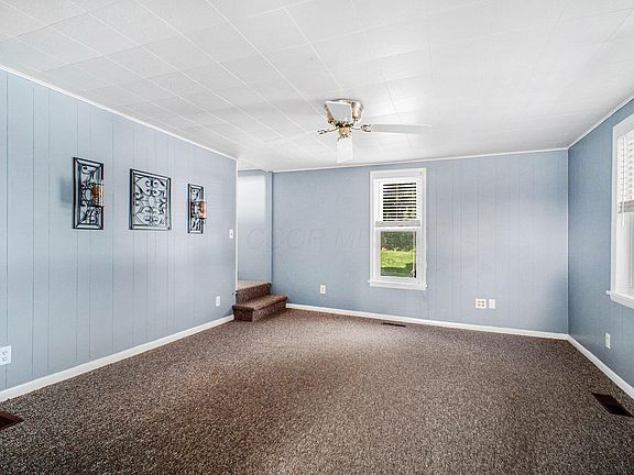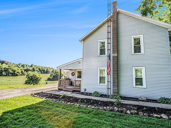 Welcome to this lovely homestead nestled on 4 sprawling acres in scenic Lucas! Stepping inside the front door, you'll be greeted by a generous sized entry with a closet, and plenty of space for shoes and coats. Also on the main floor, you'll find the primary bedroom, formal dining area with a view of the rolling hills, a galley style kitchen, the full bathroom, and the living room. Off the kitchen is the laundry area, which has an exterior door, making it convenient to come in from enjoying the outdoors. On the second floor, you can take advantage of 3 more bedrooms and a spacious half bathroom. The garage, basement, and attic provide ample storage, and the acreage will allow for all of your livestock and gardening dreams to come true! Come take a look and envision country life at its finest!
