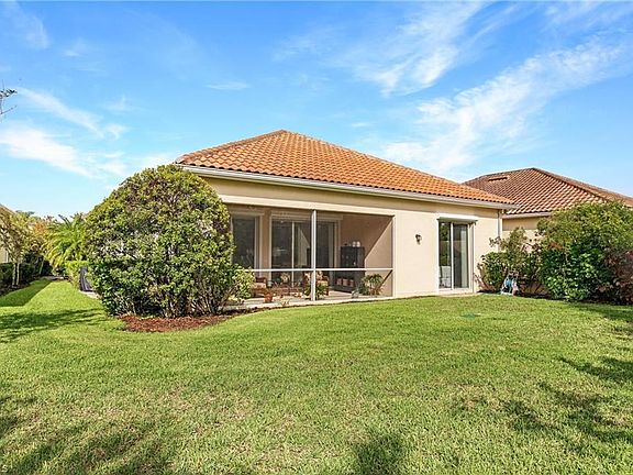 Come LIVE PLAY and RELAX in the amazing community of VillageWalk of Bonita! Available is the popular Oakmont floor plan w/3 generous bedrooms, den which can also be a home office, 2Baths and side load 2 car garage. Its screened lanai overlooks the sparkling lake, perfect for all your outdoor entertaining and to enjoy our beautiful weather w/your family and friends. Decorative touches include tile though out living areas, attractive glass insert front entry, custom entertainment center in living room w/accent lights, neutral color palette and stylish ceiling fans. Kitchen features shiny granite, light colored wood cabinets and stainless-steel appliances. Finished laundry w/storage cabinets and utility sink. Master suite is unique w/its abundance of closet space and his and her baths. Newer AC unit 2017, whole house generator installed 2019 and roll down hurricane shutters. The fabulous town center offers an active lifestyle: heated resort and lap pool, fitness, tennis, pickleball, bocce, restaurant, salon, bagel shop, lifestyle director and so much more. LOW HOA fees, gated, golf cart and pet friendly. This home is a must see!