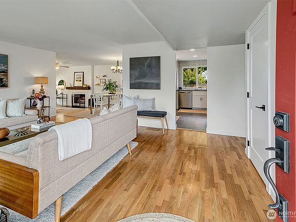 Stylish, move-in-ready rambler with space to live, grow, and entertain! This one-level, 3-bedroom, 1.75-bath home sits on a beautifully landscaped corner lot offering a hip updated kitchen, fresh paint, new carpet, and beautiful original oak hardwood floors throughout. The bright, open layout flows seamlessly out to a large, level private fenced backyard with raised garden beds—perfect for summer BBQs, pets, or play. 2-car garage with extra storage. Close to two new light rail stations coming soon (less than 2 mi away), plus quick access to freeways, shopping, dining, & parks. This meticulously maintained home is the perfect blend of comfort, style, & convenience- located minutes from nearby amenities, I-5 & 509. Easy commuter location.
