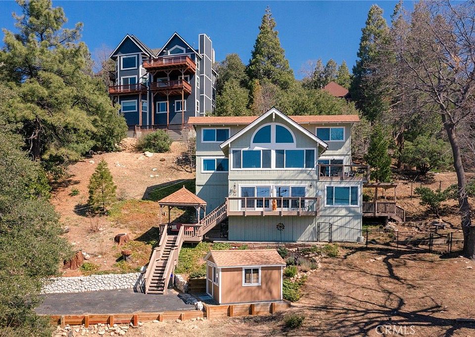 THIS is a lakeview property and at this price, maybe THE lakeview property! Sellers' loss is your gain. This impressive custom lodge-style home boasts stunning views of Lake Arrowhead from each of its three floors and every bedroom. The current owners have made extensive upgrades, including a remodeled custom kitchen with high-end cabinetry, new stainless appliances, a new furnace, new high efficiency water heater, new LVP flooring on the main floor, and new dual-pane windows. In the last two years, the exterior of the home and decks have been professionally painted, and new stainless steel cabling has been installed. New retaining walls, steps, and a second shed/workshop add to the exterior upgrades. The property can be easily accessed from the priority plowed main road through double sliders into the family room or via a separate access road through beautiful stained glass double doors on the main floor. The home features an ensuite primary bedroom on the main floor, a guest bedroom downstairs, and two additional guest bedrooms upstairs separated by the office/library, a full bathroom on each floor. The main floor boasts a soaring wood-burning fireplace that complements the cathedral beamed ceilings, which are a consistent feature throughout the home. The formal dining room provides a view across the Lake to the mountain ridgeline and access to the upper deck with a fully plumbed gas grill, while the family room downstairs is equipped with a full-size pool table, a wet bar, a double-sided gas fireplace, and its own deck - ideal for entertaining. This home blends rustic charm with modern finishes and features a unique highly functional and desirable floor plan. Additional amenities include a whole house generator, air purifier, and a central vac. There is also a fenced pet area with its own deck ideally suited for your furry friends! Although always used as a primary residence, the property is suitable for full-time living or short-term rentals, accommodating up to twelve guests, with driveway parking for five cars. Located in “the Woods” and benefitting from full Lake Rights just minutes from the Marina, UCLA, and Tavern Bay Beach Club. Furnished and move-in-ready. Welcome home!