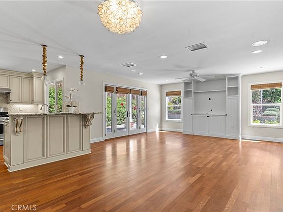 Inside, you'll find an upgraded kitchen with granite counters and stainless steel appliances, a family room off the kitchen, three secondary bedrooms, and two full bathrooms on the main level. Upstairs features a flexible office/homework space and a massive primary suite with dual walk-in closets and a stunning remodeled bath. Step outside to your own private oasis complete with a spa, fire pit, and fruit trees, all surrounded by total privacy.This one-of-a-kind home captures the quintessential Southern California lifestyle in a peaceful neighborhood setting.