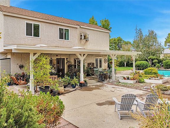 Tucked at the top of a quiet cul-de-sac, this exceptional 3-bedroom, 3-bath home sits on a sprawling 1.3-acre lot showcasing sweeping mountain and valley views. Designed for both relaxation and entertaining, the backyard retreat offers a sparkling pool, covered patio, mature trees, terraced grounds, and an automatic sprinkler system. Inside, the remodeled kitchen impresses with granite counters, recessed lighting, and soft close pull-out cabinets, opening seamlessly to the inviting family room with a dramatic fireplace and custom built-in cabinetry. Formal living and dining rooms feature elegant mouldings and striking bay windows that frame beautiful natural light. All three bathrooms have been tastefully renovated, including the primary suite with a walk-in shower. Thoughtful upgrades throughout include warm wood flooring and solid knotty alder interior doors. Essential updates—such as a full copper repipe, brand-new dual-pane energy-efficient windows and new HVAC—provide lasting comfort and peace of mind. Perfectly blending privacy, convenience, and natural beauty, this rare property is just minutes from shopping, dining, award-winning schools, hiking trails, and the 14 Freeway. Welcome home to 28839 Kenroy Avenue!