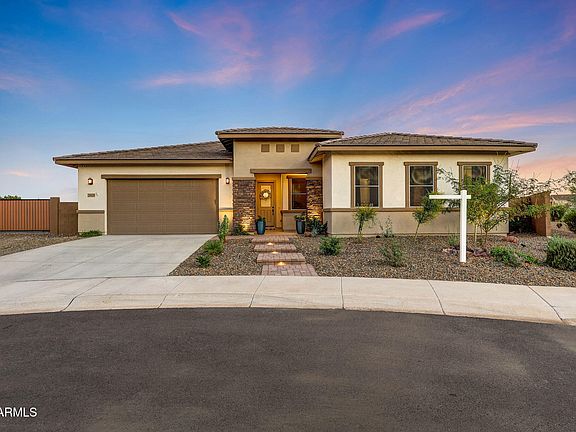 Elevated with mountain views - This is IT - a cul-de-sac corner lot on one of the largest lots in the community! This 4 bed + office + flex/teen room home offers a 3-car garage, extra-wide RV gate, and space to build an RV garage or guest casita. Enjoy the custom pool w/ zero-edge infinity spa, multiple patios, turf play areas & room to entertain. Inside: gourmet kitchen w/ massive quartz island, S/S appliances, double ovens, 42'' uppers, herringbone backsplash & walk-in pantry. Expansive great room showcases a designer electric fireplace wall, high ceilings & natural light. Split floorplan offers privacy & flow. Located in Peoria's fast-growing corridor near top-rated schools, hiking, golf, dining & new retail — this home blends luxury, lifestyle & limitless potential