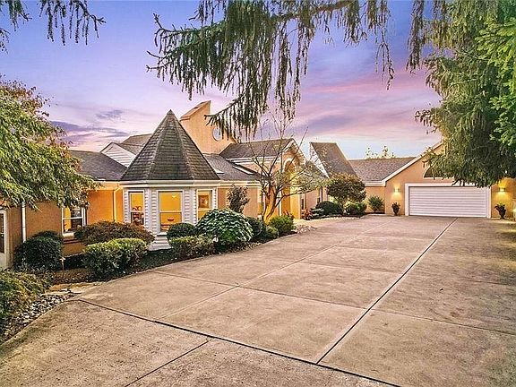 Contemporary design captures the natural beauty of this sprawling ranch situated privately on over 1.3 acres in Moon Twp., only minutes from shopping, restaurants, Montour walking trails, DT Pittsburgh and the Pittsburgh Airport. The Dramatic LR has soaring ceilings, panoramic views that merge the outside in and bathes in natural light throughout with large floor to ceiling windows anchored by a dramatic 2STY stone FP. The open floor plan flows to the DR and Sunken Great room thats ideal for entertaining! Relax & enjoy the views of sunsets off the back deck overlooking a beautiful in-ground pool, waterfall and Hot Tub. Adjacent to the modern kitchen is a quaint turret style breakfast nook. Incredible owners en-suite with soaring beamed cathedral ceiling design w/a private deck overlooking the pool and grounds. The incredible LL features 2 GR'S, a sun-room, guest BR, Spa Bath with Steam Shower and an expansive whirl pool tub. A second kitchen, laundry area could host an in-law suite.