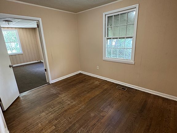 Hardwood floors and some carpeted bedrooms. House has central heat and air.