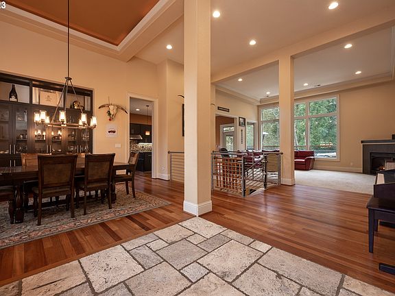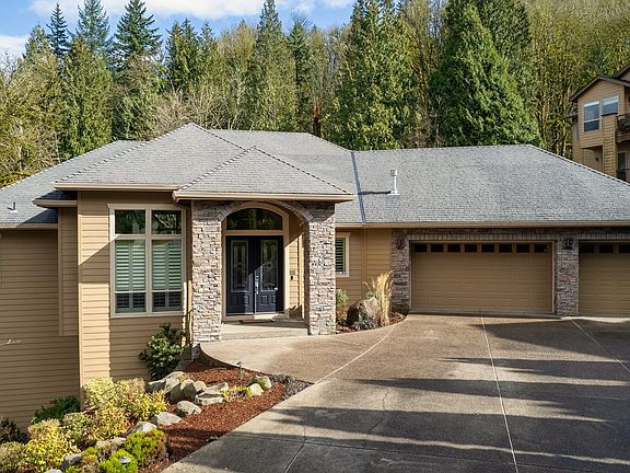 Stunning home that backs to green space. Main level living with open floor plan. High ceilings and large rooms. Primary on the main floor with door to the deck and heated floors in the primary bathroom. Large cooks kitchen with stainless steel appliances leads to a covered deck area for year round enjoyment. Lower level has 3 very large bedrooms, living area and theater room. Don't miss the large storage room and the over sized 3+ car garage! Newly remodeled Gresham High school is very impressive!