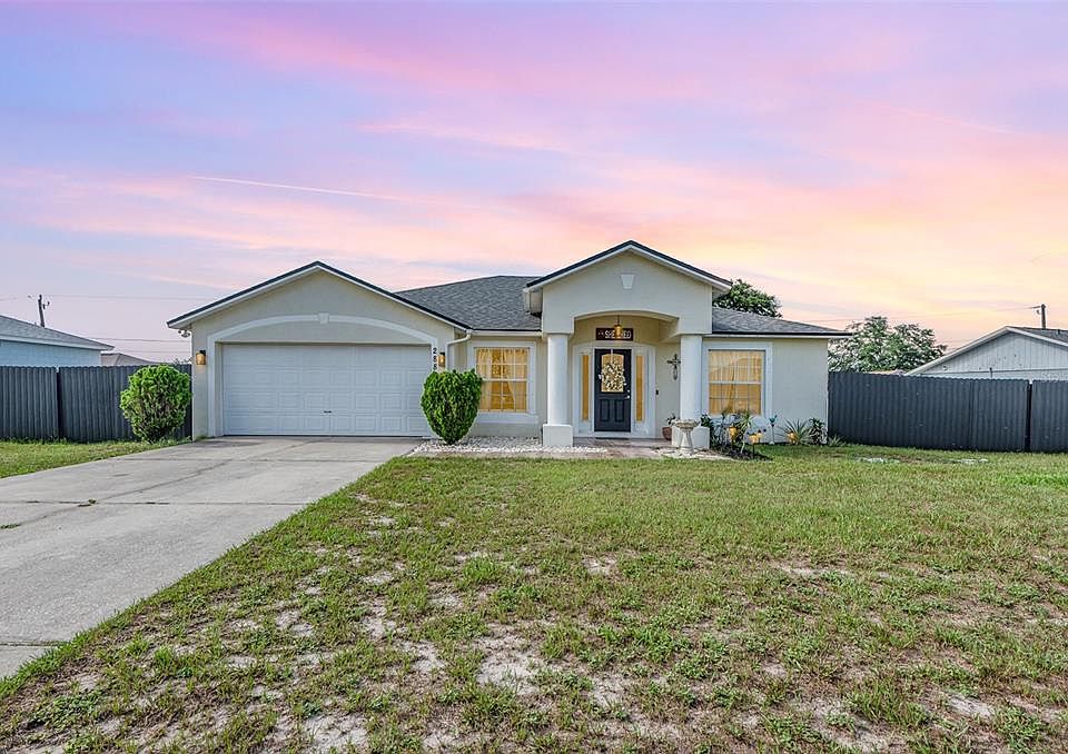 Deltona charming well kept, 3 bedroom 2 bath 2 car garage MOVE IN READY updated CONCRETE BLOCK home with newer roof (2021), water heater (2018), and Septic drainfield (2020), HVAC (2020). Stylish living room and formal dining room upon entry. The Fantastic eat-in kitchen has a brand new refridgerator, range, and hood vent, butcher block wood counters with new large soft close cabinets. The bathrooms have been recently updated (2021) Garage door motor (replaced 2021) All tile flooring throughout beautifully maintained home are ceramic tile. No carpeting. Home has a Google thermostat, an Alarm system and sprinkler system, with a lovely landscaped and completely fenced in yard. Enjoy the tranquil screened in lanai, delightful for entertaining. The 2 car garage brings this well maintained home up to 2288 total square feet. Chandelier in living room does not convey with home but all other lighting does. This home is near shopping and restaurants. NO HOA. Conveniently located near the interstate for quick access to Orlando or Daytona Beach. If pre-qualified with preferred lender, a $1500 credit will be offered. All information deemed reliable but not guaranteed and should be independently verified. Schedule your showing today!