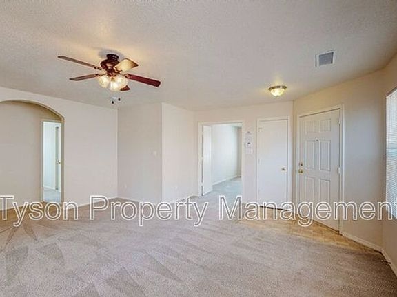 "Backup applications can be submitted" This lovely single story home is located off Paseo del Vulcan and Broadmore in Northeast Rio Rancho. As you enter the home there is a spacious living room that includes a ceiling fan. The kitchen features all major appliances including a built-in microwave, a built-in dishwasher, a refrigerator, and a gas stove. The formal dining room has easy access to the backyard via a sliding glass door. On the other side of the house there are two guest bedrooms, a full guest bathroom, and a primary bedroom that also has a full primary bathroom. A laundry room with a washer and dryer unit complete the interior of the home. The exterior of the home has a backyard that includes landscaping, fencing, and a small patio. There is also a two car garage. *None of our homes are advertised through us on Craigslist. If you see this property on Craigslist please be aware it is a scam* *Please do not leave the keys outside of the lockbox.* * No Smoking Permitted in or on the Premises* **Prior to submitting an application, please carefully review our Application Qualification Criteria: **Ensure all required documents are uploaded to your application. Petscreening profile must be completed prior to submitting application: https tysonproperties. Incomplete applications will not be processed until all required documentation is received** Amenities: 2 car garage, pet policy: 1 cat or dog (up to 25 pounds)