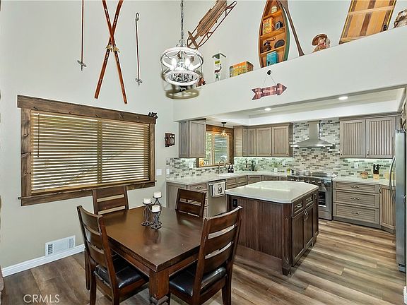 Everyone dreams of a lake-view getaway, and this one could actually be yours. With a highly motivated seller open to all offers, now’s your moment to make it happen. Perched above the treetops in Lake Arrowhead, this 4-bedroom, 2-bath mountain retreat seamlessly blends cozy charm with modern comfort. From the moment you walk in, vaulted ceilings with exposed beams, rich wood-style flooring, and a striking stone fireplace set the tone for elevated mountain living.
