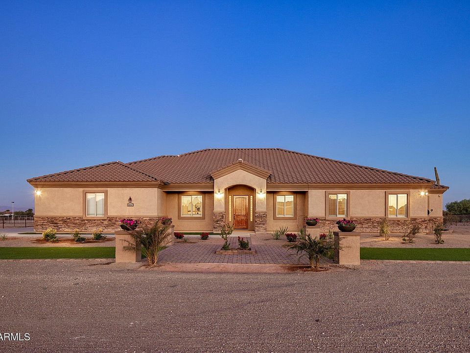 Rare, turn-key & exceptional fully fenced, custom horse property nestled on an oversized 5-acre lot! Great curb appeal w/ stone accent details, desert landscape, low maintenance artificial turf, RV gate, 6 horse stalls, 4-car garage & private well. Open floor plan w/ plantation shutters, light & bright neutral palette, & tile in common areas. Designed for everyday living & entertaining featuring a formal dining & spacious great rooms w/surround sound! Gourmet kitchen boasts 42'' cabinets, SS appliances, granite counters, mosaic tile backsplash, & oversized island w/breakfast bar. Walk-in pantry & staggered cabinetry w/ ample storage. Enjoy the majesty & adventure of living w/ in 3 miles of San Tan Regional Park. Nearby shopping 2.5 miles away, QC Marketplace w/ in 20 minutes. The double doors open to the owner's suite, featuring a lavish bathroom with two walk-in closets, two vanities, a tiled step-in shower, & a soaking tub. Laundry room with a sink & cabinetry for added convenience. The HUGE backyard has been tastefully divided! Relax under the full-length covered patio & paver-Ramada while enjoying the unobstructed tranquil vistas. Beyond the fence, you have an expansive open space with a run-in shed for your horses. Bring your toys, trucks, RVs, & other animals - this property has plenty of space! Don't miss this fantastic opportunity!