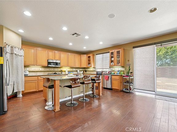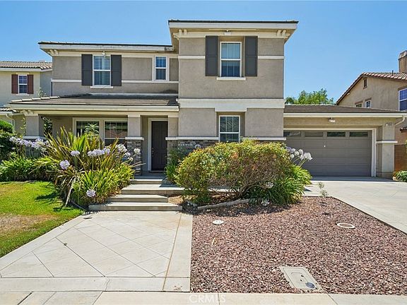 TRULY A MUST-SEE! Stunning former Beazer model home featuring 3,351 sq. ft., 4 bedrooms, 4 bathrooms, and a private office, situated on a pool-sized lot with a 3-car tandem garage. This home has designer upgrades, including custom paint, elegant window treatments, and upgraded flooring. Step inside to find beautiful wood flooring, custom-designed tile, and crown molding in the dining and living rooms. Designer area rugs are included with the home. The spacious great room with a cozy fireplace flows seamlessly into the gourmet kitchen, complete with granite slab countertops, custom tile backsplash, a large center island with seating, GE stainless steel appliances, a writing desk, and a walk-in pantry. The downstairs library features crown molding, custom-built-in desks, bookshelves, designer carpeting, and plantation shutters. The laundry room, also downstairs, offers ample cabinetry, Corian countertops, and a sink. Upstairs, all bedrooms have their unique designer touches, including custom carpeting and stylish finishes. Each bathroom features tile flooring and Corian countertops. The luxurious primary suite boasts crown molding, ceiling fans, custom wallpaper, a private deck, dual sinks, upgraded countertops, wood shutters, and a large walk-in closet. The backyard is perfect for entertaining with a concrete patio, covered seating area, and built-in BBQ—ideal for summer gatherings! Located in a fast-growing city, this home is your chance to own a beautifully upgraded property in a prime area. Don’t miss the opportunity to make this your forever home!