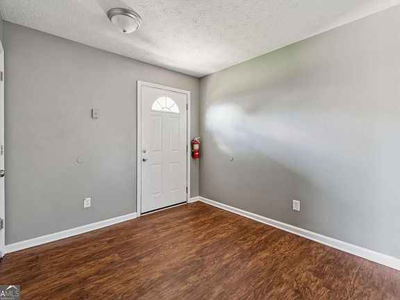 Recently updated 2 bedroom, 1 bath apartment in Austell, just off Thornton Rd. This lower-level, single-story home has neutral paint, laminate flooring (no carpet), ceiling fans with lights, insulated windows, and blinds already installed. The kitchen has plenty of counter space with brown cabinets and black appliances, including a refrigerator and stove. There's also a breakfast area and a laundry nook right off the kitchen. Both bedrooms are spacious and share a bathroom with a tub/shower combo. Each unit comes with a separate front and back entrance for added convenience.